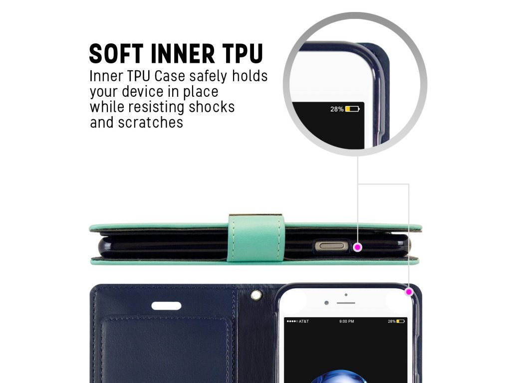 Tyrkysové flipové pouzdro Mercury Rich Diary Wallet pro iPhone 11
